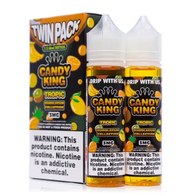 Tropic Bubblegum Twin Pack eJuice by Candy King offers a delicious escape into the paradise your taste buds only dream about! Dive into a world of clouds scented with fruits and sweets. Enjoy a refreshing blend of juicy fruits swirled into a chewy square of bubblegum, brought to you by the king of candy e-liquids!